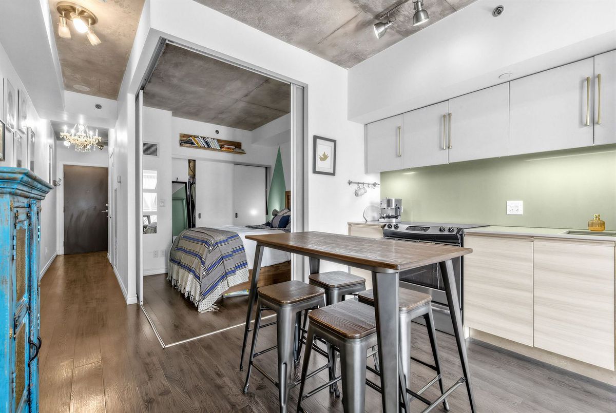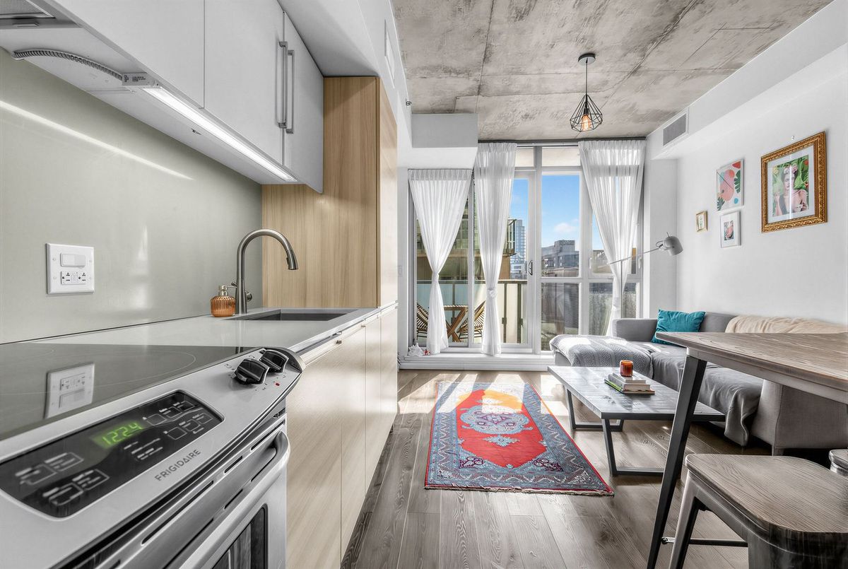 Stylish Loft Living In The Heart Of Queen West. Welcome To 8 Gladstone, A Modern One-Bedroom Suite By Streetcar Developments Located In One Of Toronto's Most Vibrant Neighbourhoods. This Bright, South-Facing Unit Features An Efficient Open-Concept Layout With Floor-To-Ceiling Windows, A Private Balcony, And Exposed 9' Concrete Ceilings For A True Loft Feel. The Contemporary Kitchen Showcases Quartz Counters And Backsplash, Stainless Steel Appliances, And Ample Storage. Complete With A Sleek 3-Piece Bathroom With Glass Shower And Convenient In-Suite Stacked Laundry. Steps From Queen West's Best Restaurants, Cafés, Shops, Groceries, And Entertainment, With Transit At Your Doorstep For Easy Access Across The City.