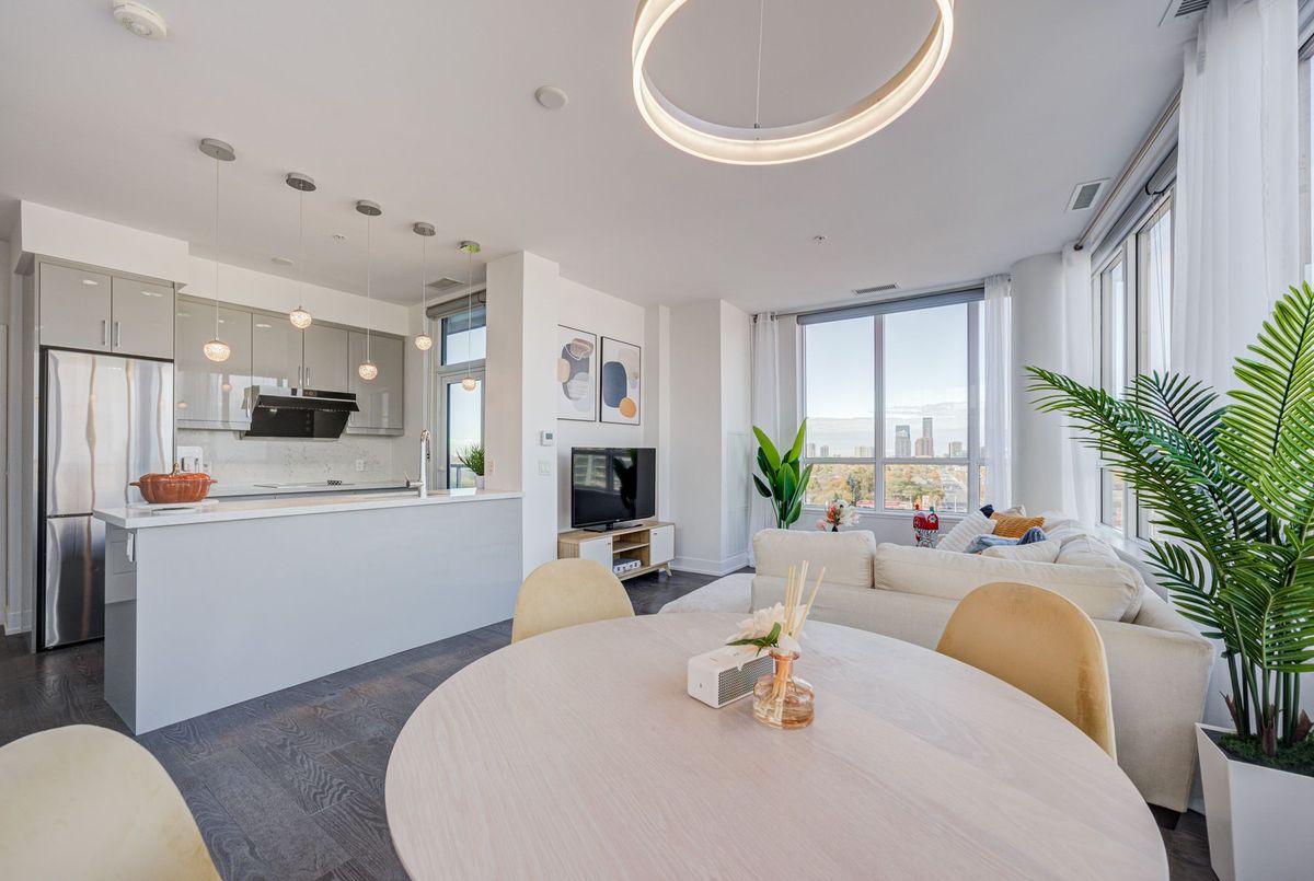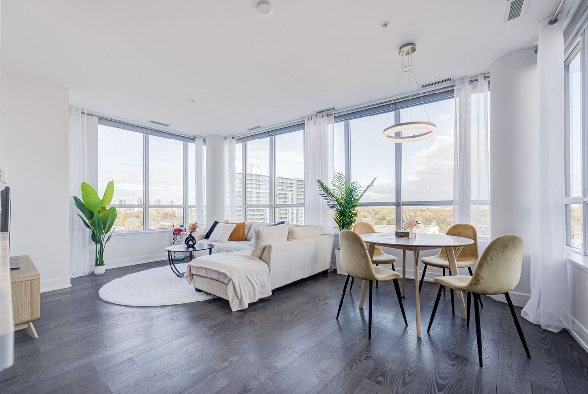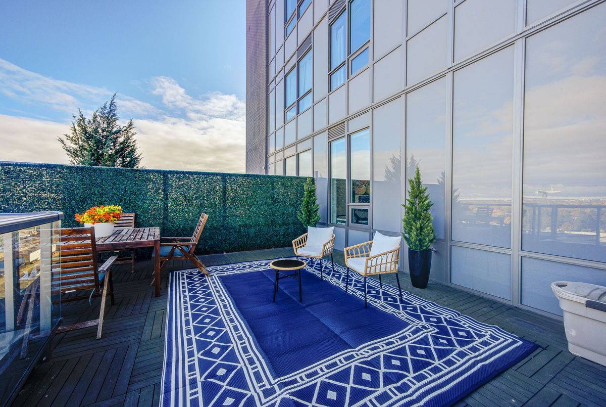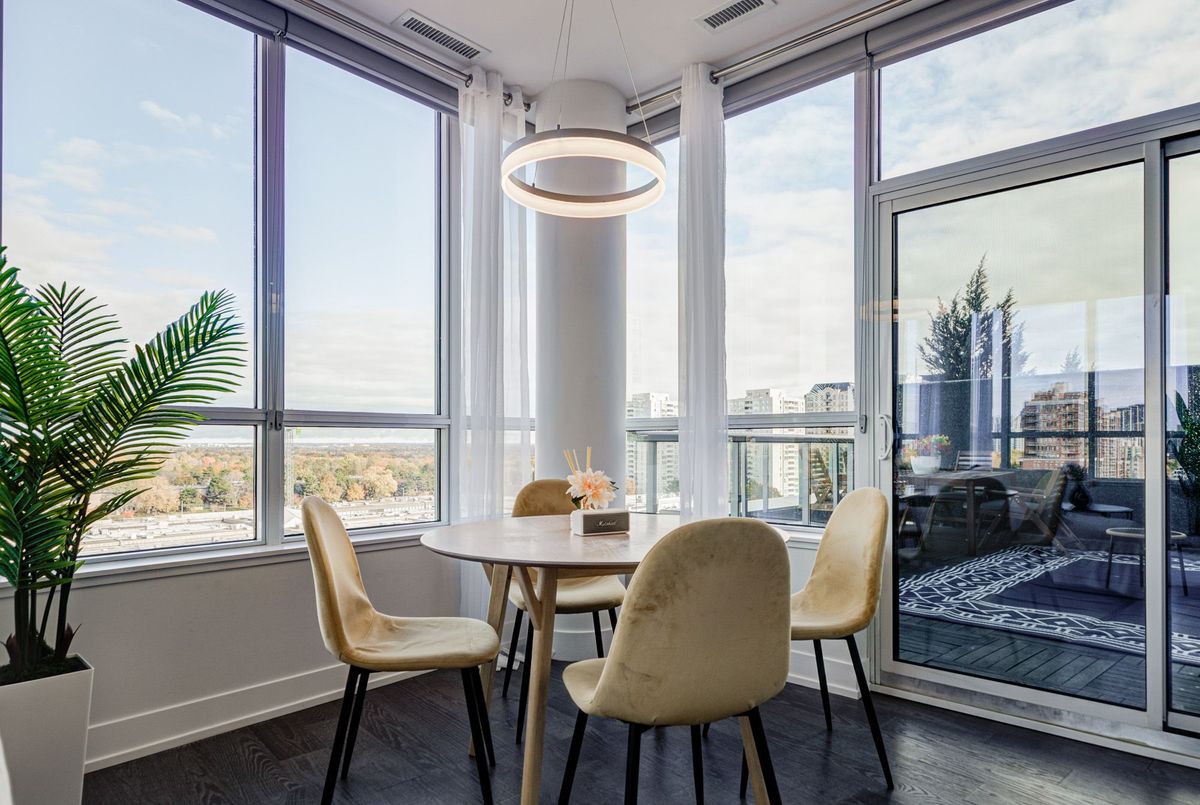 One-of-a-Kind Corner Suite in the Heart of Bayview Village!This rare 2 Bed, 2 Bath corner unit offers 1543 sq.ft. of total stylish living space including an expansive 400+ sqft private rooftop terrace - a true luxury in the city.With windows on 3 sides, this home is filled with natural light from sunrise to sunset. The modern layout features 9-ft ceilings, floor-to-ceiling windows, and two balconies, filling the home with unobstructed views of Bayview Village and the city skyline. The open-concept living,dining, and kitchen area is perfect for both daily living and entertaining.Over $30,000 in recent upgrades include marble countertops, stainless steel built-in appliances, marble backsplash, and a functional centre island. Both bedrooms offer large closets with custom organizers, and the primary bedroom includes a spa-like ensuite with glass shower. Wood flooring through-out with designer lighting fixtures.1 parking space (convenient location in P1 close to exit and elevator) and 1 locker included.Don't miss this rare chance to own a truly unique urban retreat with unmatched indoor-outdoorliving!Prime location directly across from Bayview Subway Station, Bayview Village Mall, grocery stores, and a wide variety of dining options. Just minutes to HWY 401 and 404. The building features 24-hour concierge service, a fitness center, party room, guest suites, and more.