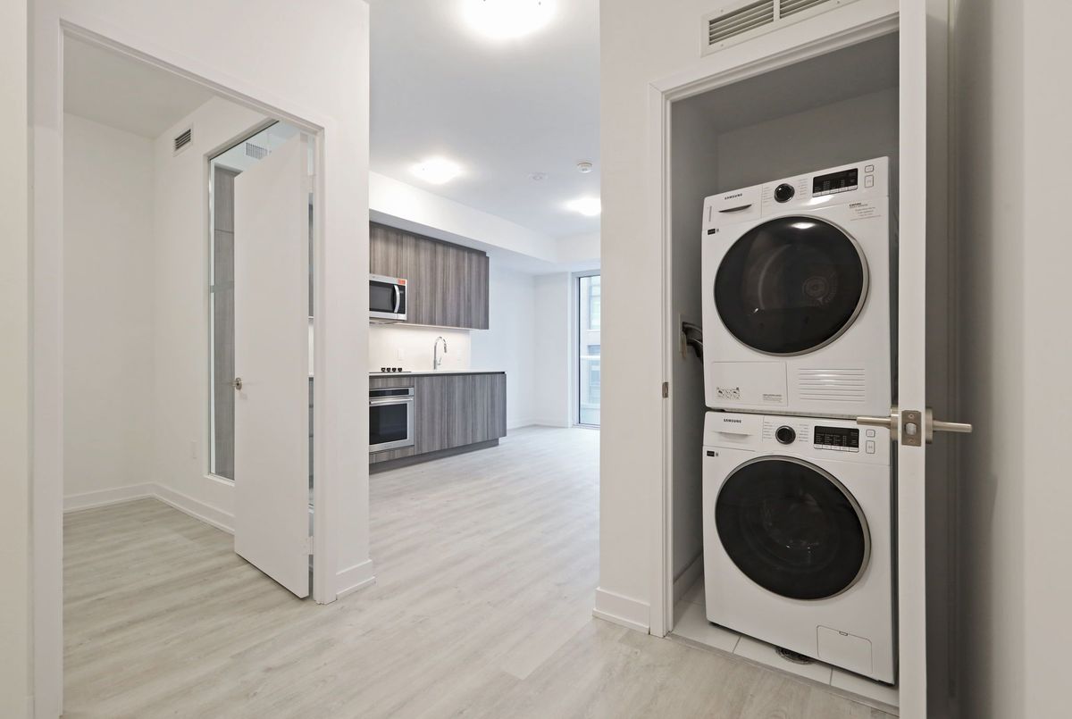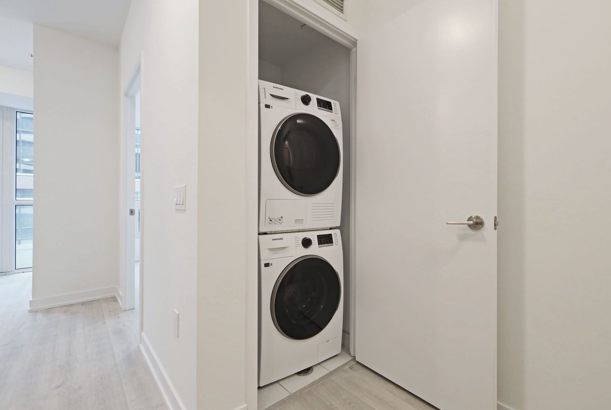 Live steps from Sugar Beach in this well-planned 2-bedroom, 2-bath condo with parking at 15 Richardson St #927. A private entry hallway creates welcome separation before the suite opens into an inviting open-concept living/dining area with southwest light and a Juliette balcony. The kitchen delivers a polished, modern look with European-style flat-panel cabinetry, under-cabinet lighting, soft-close hardware, composite stone counters and backsplash, and an integrated appliance package including a built-in fridge with bottom freezer, smooth cook-top, convection oven, panelled dishwasher and microwave hood-fan. Both bedrooms are fully enclosed with real doors, and the second bedroom works easily as an office, guest room or fitness space. Two full baths, in-suite front-loading laundry and secure card-access parking round out the essentials. The building offers 24/7 concierge and security, a fitness centre, yoga studio, co-working spaces, a boardroom and a shared rooftop terrace with BBQ. All of this in a south core location that puts the waterfront, lakefront trails, St Lawrence Market, restaurants, transit and quick highway access within easy reach.