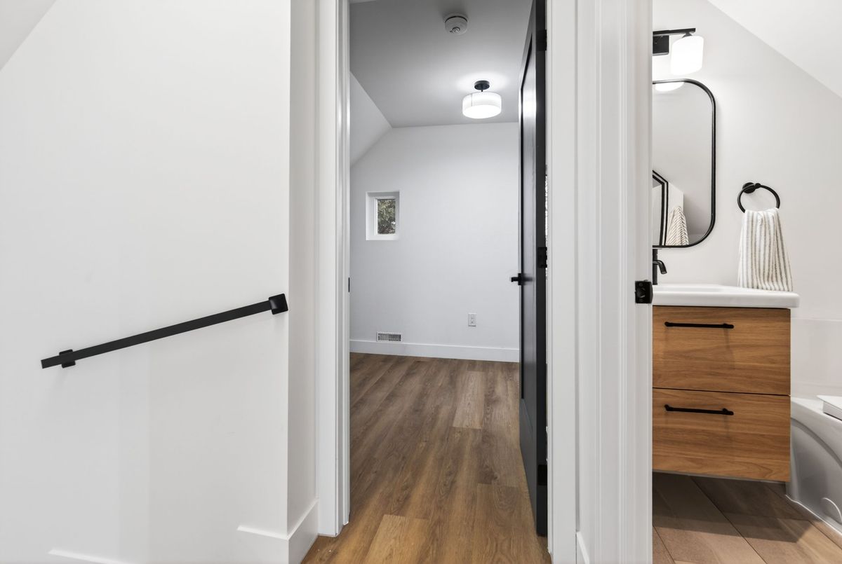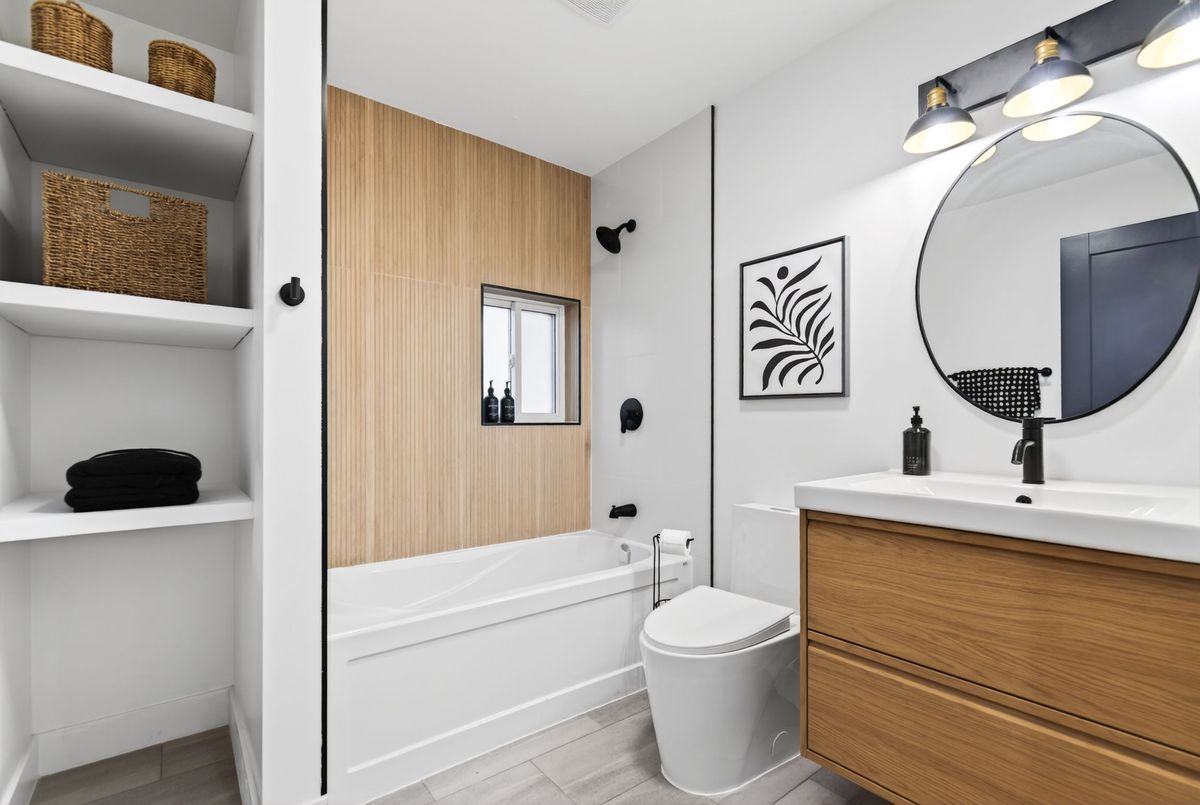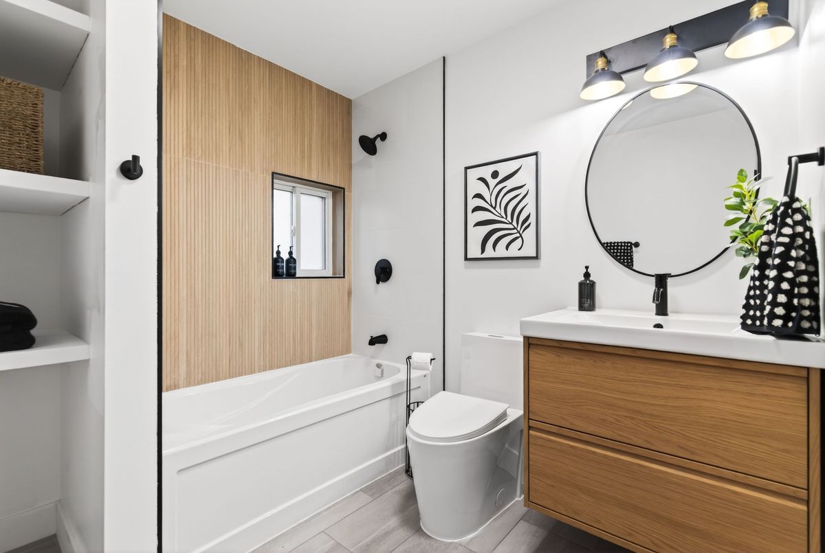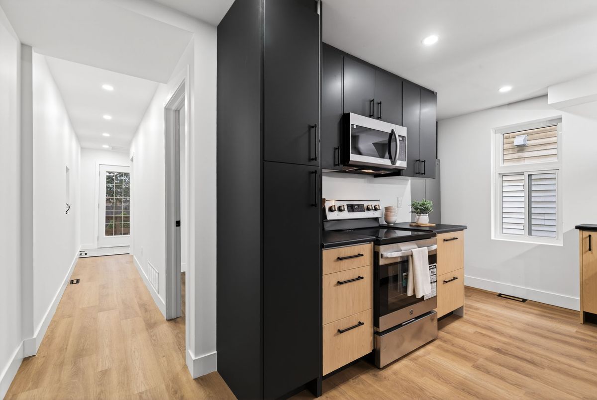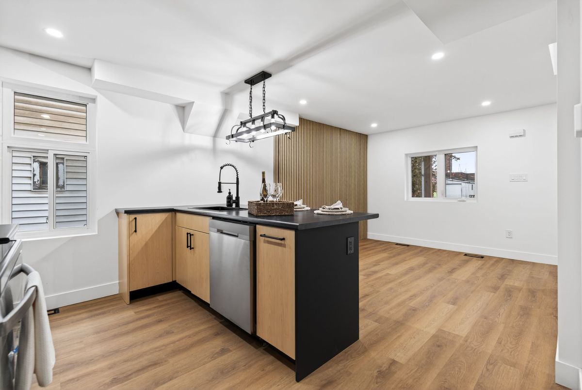 Newly renovated 1.5-storey 3 bedroom detached home with beautiful modern finishes! Chef'skitchen with brand new stainless steel appliances opens to living room. Convenient main floorbedroom and two more bedrooms upstairs. Bright modern full bathrooms on both levels. Main floorlaundry at the back of the home. Carpet free flooring throughout. Here's your chance to live infully renovated home with new kitchen, bathrooms, windows, flooring, electrical, plumbing,ductwork and so much more. Detached garage and private back yard. Private driveway parking.Close to shopping, lake, transit and highway.
